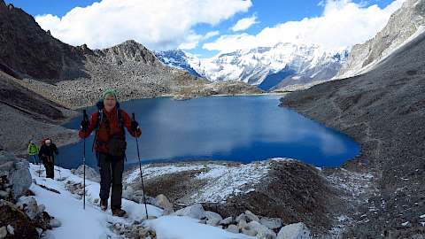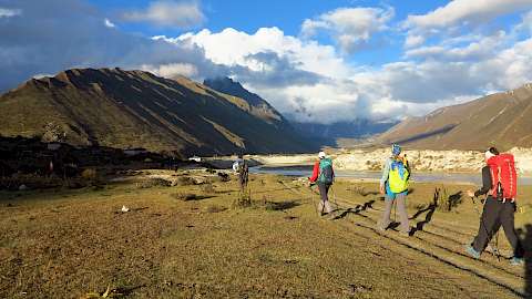 Voraussetzungen: Technisch anspruchsvolle Bergwanderung, für die Sie Gesundheit, Trittsicherheit und Kondition für Gehzeiten bis zehn Stunden bei 1400Hm im Auf-/Abstieg mit Tagesgepäck mitbringen. Die Länge mancher Etappen, das besonders bei Neuschnee schwierig zu begehende Gelände und der Gesamtzuschnitt der langen Tour erfordert von allen Teilnehmern Durchhaltevermögen und eine gewisse Härte sich selbst gegenüber. Die größte Übernachtungshöhe wird bei 4970 Metern erreicht. Flexibilität, Geduld und ein hohes Maß an Teamgeist sind erforderlich.