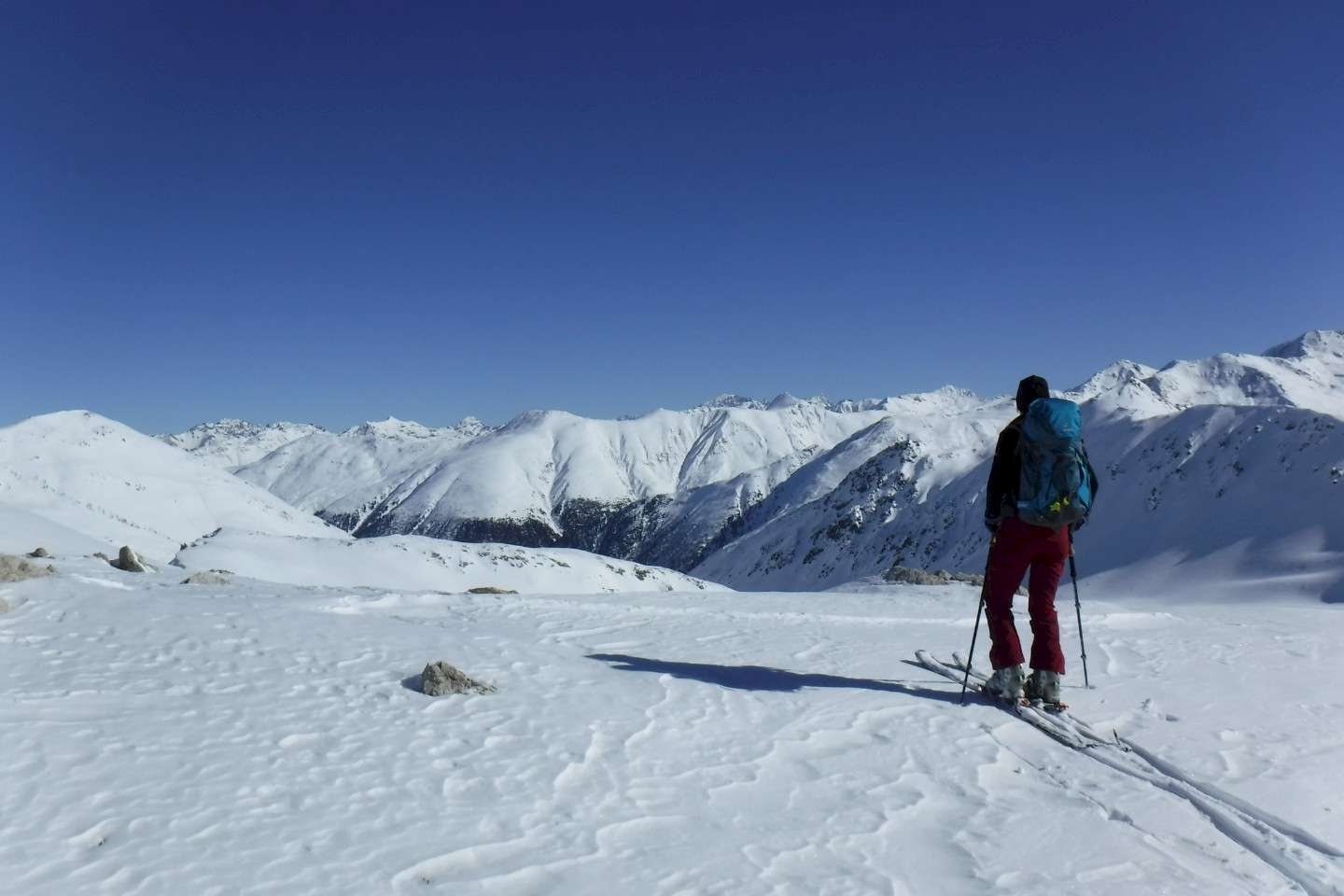 Voraussetzungen: Kurven in paralleler Skistellung im Gelände in jeder Schneeart. Tiefschnee-Erfahrung ist unbedingt erforderlich. Gute Kondition für lange Skitage und bis zu 5000 Tm.