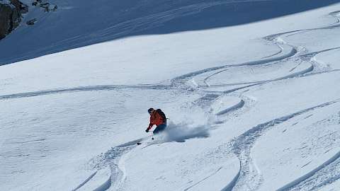 Voraussetzungen: Kurven in paralleler Skistellung in jeder Schneeart, auch in steilerem Gelände. Tiefschnee-Erfahrung ist unbedingt erforderlich. Gute Kondition für lange Skitage und bis zu 7000 Tm Abfahrten.