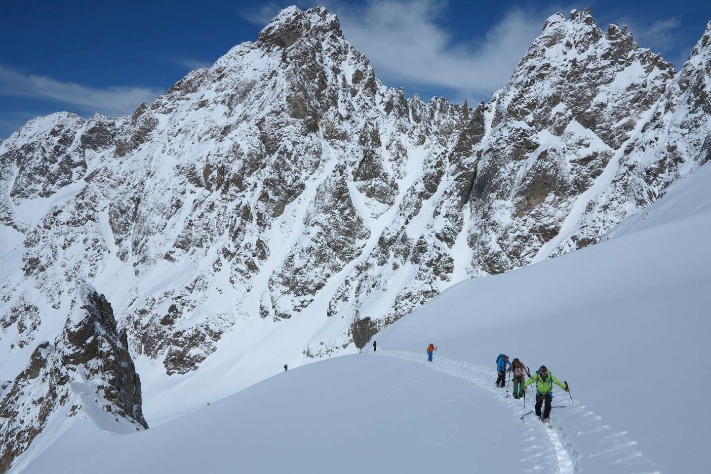 Voraussetzungen: Technisch anspruchsvolle Skihochtouren für erfahrene Skibergsteiger, vielfach über Gletscher. Trittsicherheit, Schwindelfreiheit und Kondition für Aufstiegszeiten von bis zehn Stunden, 1900 Hm und für entsprechend lange Abfahrten auch in grosser Höhe bringen Sie mit. Einige Gipfel verlangen leichte Gratkletterei auch mit Steigeisen, auf dem Gletscher kann auch einmal eine Seilsicherung notwendig werden. Die höchste Übernachtung erfolgt auf 3700 Metern. Vorakklimatisation empfohlen.