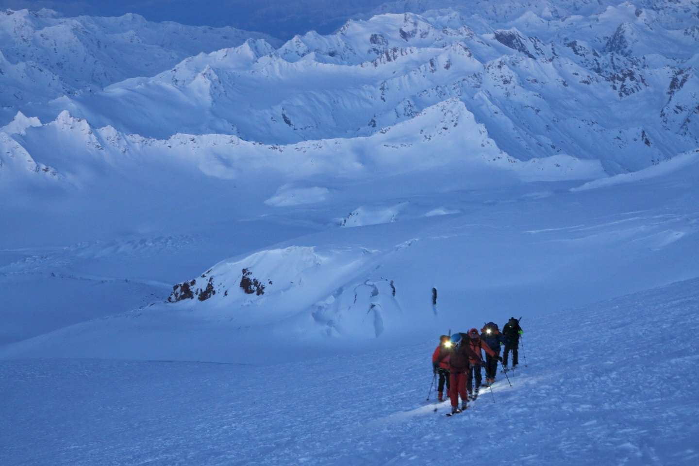 Eine Skitour zum Elbrus – mit 5642m der höchste Berg Europas und einer der „Seven Summits” – ist eine ganz besondere Herausforderung für passionierte Skibergsteiger. Aber auch die Eingehtouren im Adyrsu-Tal mit seinen einsamen und unberührten Schneehängen sind schon die Reise wert. Bestens vorbereitet, beginnt am fünften Tag das Unternehmen Elbrus: Vom Ausgangslager "Botschki" 3700m zum höchsten Punkt. Läuft alles wie geplant, gibt es noch zwei Touren im Baksan-Tal als schöne Zugabe obendrauf. Gipfelmöglichkeiten: Koiavgan-Pass 3559m, Gumachi-Pass 3540m, Granovskovo-Pass 3759m, Akklimatisationstour zu den Pastuchovfelsen 4680m, Elbrus Westgipfel 5642m, Tscheget 3461m, bei guten Verhältnissen Kleiner Kogutai 4694m.