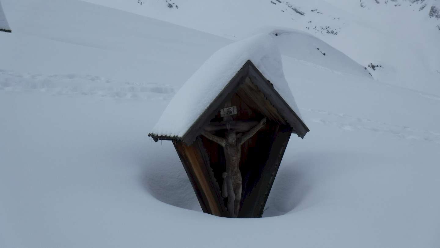 Gipfelmöglichkeiten: Wurzer Alpenspitze 2220m, Kleine Kreuzspitze 2518m (nur bei mässiger Lawinengefahr), Einachtspitze 2225m, Glaitner Hochjoch 2389m, Hochspitze 2424m.
