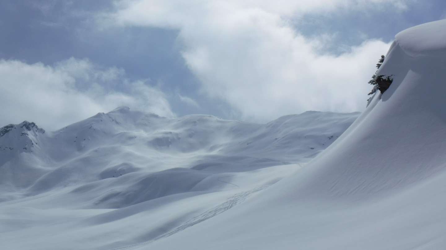 Voraussetzungen: Tiefschnee-Erfahrung ist unbedingt erforderlich. Sie fahren Kurven im Tiefschnee in mittelsteilem Gelände in paralleler Skistellung, aus Sicherheitsgründen gelegentlich in der Spur des Bergführers. Gute Kondition für Aufstiege von vis zu 1000Hm und damit verbundene Abfahrten.