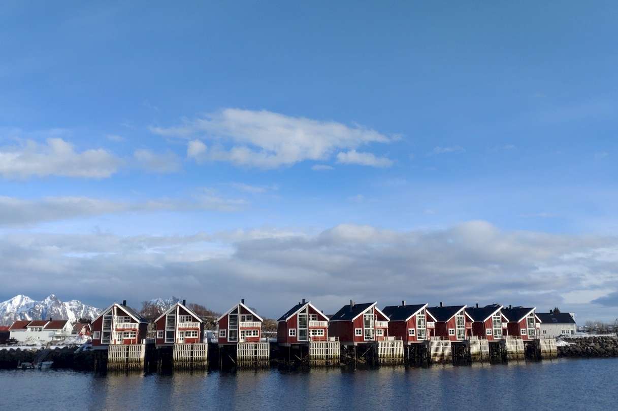 Wir wohnen im Hauptort Svolvær in einem geräumigen Ferienhaus direkt am Wasser von Svinøya. Abends kochen wir gemeinsam, oder essen in einem der zahlreichen Restaurants zu Abend und genießen norwegisches Flair.