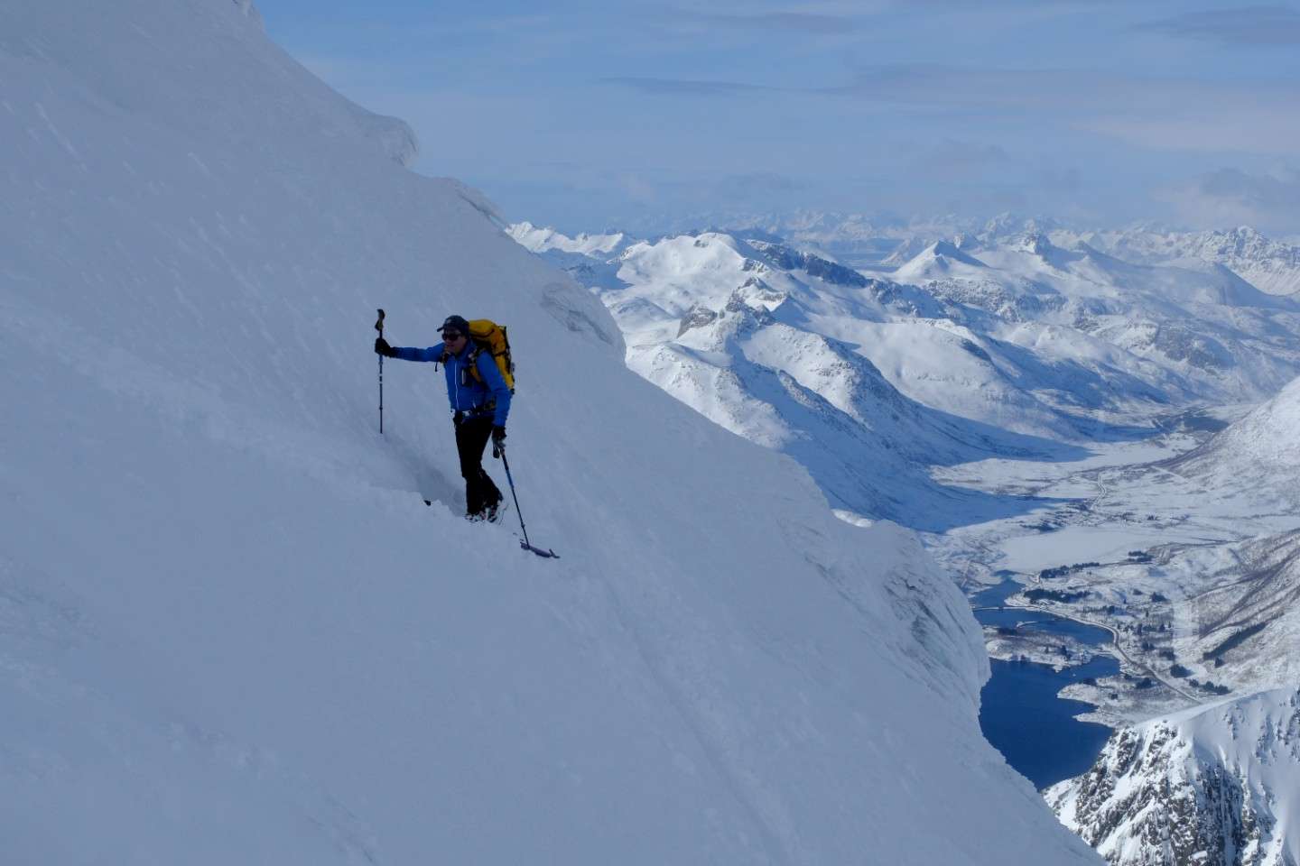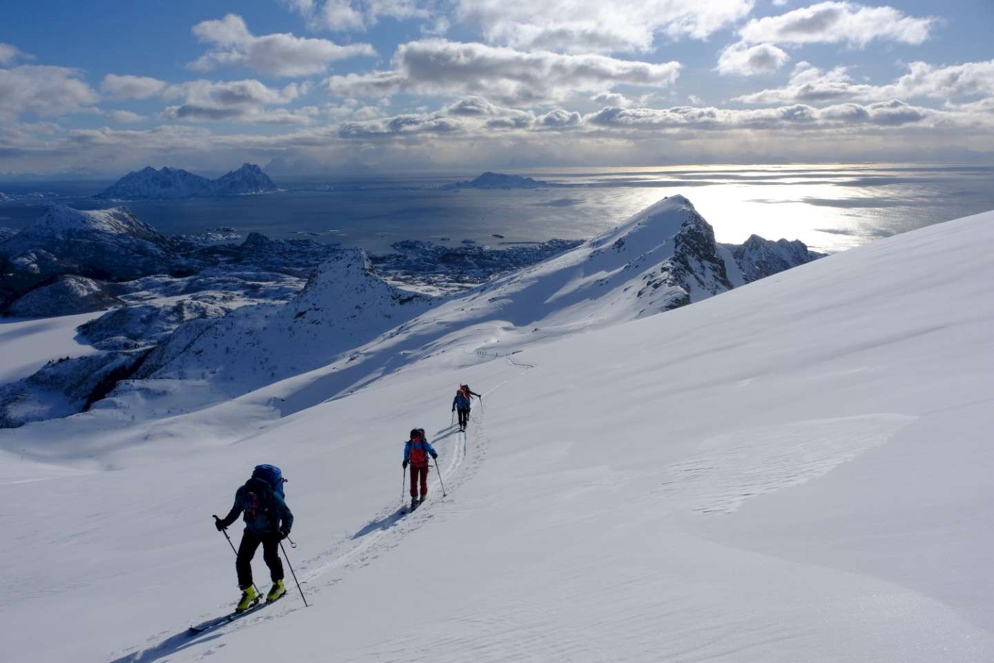 Die Inselgruppe der Lofoten, etwa 200 km nördlich des Polarkreises gelegen, ist für ihre Naturschönheiten bekannt und einer der ursprünglichsten Orte für außergwöhnliche Skitouren. Die rund 80 Inseln erstrecken sich auf einer Länge von 120 Kilometern im Atlantik vor Norwegens Westküste und sind vom Festland durch den Vestfjord getrennt. Die teils schroffen Berge der Lofoten sind bis zu 1200 m hoch. Auf unseren abwechslungsreichen Skitouren eröffnet sich ein oft spektakuläres Panorama zwischen schneebedeckten Gipfeln, türkisfarbenen Buchten und bunten Fischerhäusern. Vielerorts sind Abfahrten bis zum Meer möglich.