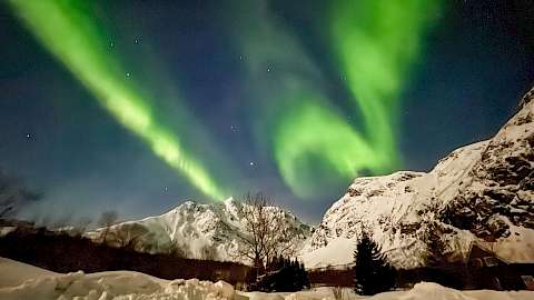 Die Lyngenalpen zählen zum Skitouren-Mekka Norwegens: an der Ostküste der Lyngenhalbinsel liegt der kleine Ort Koppangen, hier sind wir in gemütlichen Appartments untergebracht. Die Skitouren erreichen wir bequem mit eigenem Minibus, manchmal in Verbindung mit Fährtraversen des Lyngenfjords. Aufstiege bis zu 1200 Höhenmeter und natürlich entsprechend lange Abfahrten versprechen Skispass pur, in oft unberührtem Terrain bis hinunter zum Fjord. Sollte nach einer Tour noch Zeit sein, können wir bei Aurora Spirit, der Welt nördlichsten Whiskydistillerie vorbeischauen. Abends genießen wir nordische Küche, z.B. mit fangfrischen Fisch. Mit etwas Glück können wir zu später Stunde noch das Nordlicht bestaunen.
